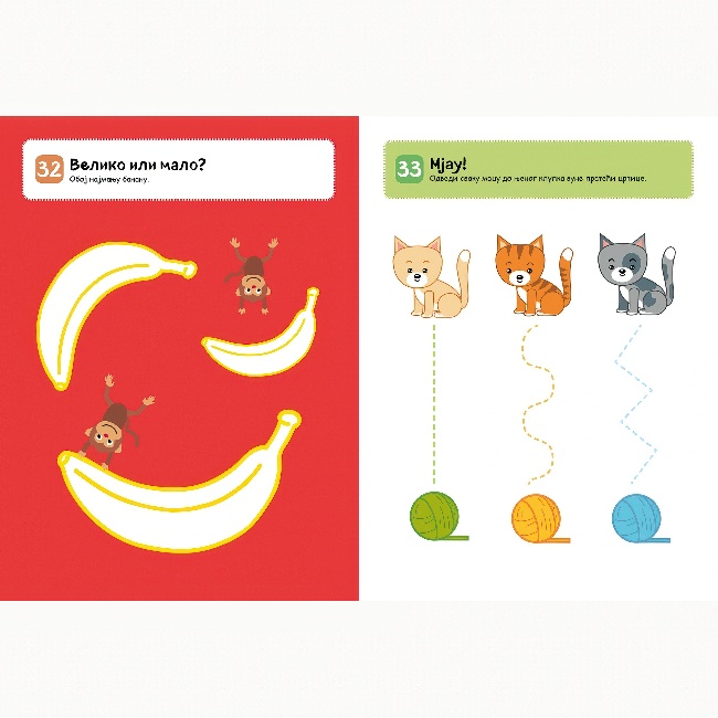 Zabavni zadaci za djecu od 2 godine U ovoj knjizi čeka te 100 zanimljivih zadataka osmišljenih posebno za djecu od dvije godine! Boji prateći uputstva, traži izlaz iz lavirinta, spajaj tačke, crtaj i zabavljaj se satima dok istovremeno učiš! Hoćeš li uspjeti da riješiš sve izazove?