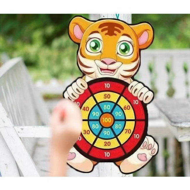 Društvena igra pikado sa lopticama Pikado oduvijek važi za jednu zanimljivu društvenu igru. Cilj igre je jasan-strelicom pogoditi metu i osvojiti što više bodova. Ova zabavna igra dobila je novo "ruho". Sada je namjenjena i najmladjima. Pravila su i dalje ista. Svaki igrač baca lopticu tri puta. Ukoliko pogodi najveći broj, dobija mogućnost ekstra bacanja. Lopta se baca u pet ponavljanja za svakog igrača. Igrač sa najvećim zbirom je pobjednik. Zahvaljujući ovoj igri, deca će naučiti osnove matematike na zabavan i lak način. Istovremeno, razvijaće zdrav takmičarski duh, ali i finu motoriku. Preporučeni uzrast:5+g" **Party Time igračke za najskuplji osmjeh!**