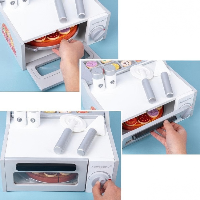 Napravi pizzu - drveni set koji sadrži šporet za pečenje pice, picu, pribor za jelo, različite sastojke za picu, i dr. Odlična igračka za igre mašte i uloga koja podstiče društvene vješti... pročitaj više