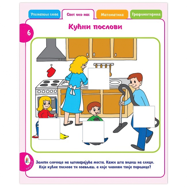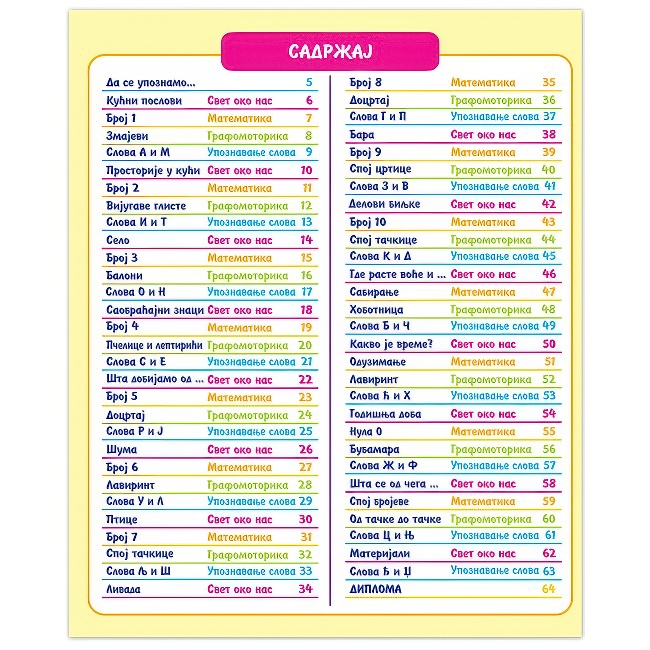 Radna sveska, zabavna MALA ŠKOLA, namijenjena je djeci uzrasta od 6-7 godina i u značajnoj mjeri predstavlja ozbiljnu pripremu djece predškolskog uzrasta za školu. Djeca na neobično kreativan način...