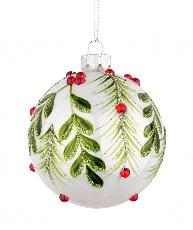 Novog. kićanka - kuglica Berry fi 8cm bijela/zelena/crvena Bizzotto
