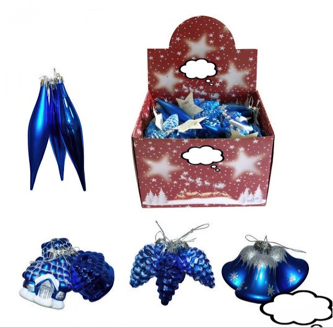 Novog. kićanke u obl. ledenice/zvona/kućice/šišarke boja plava sort