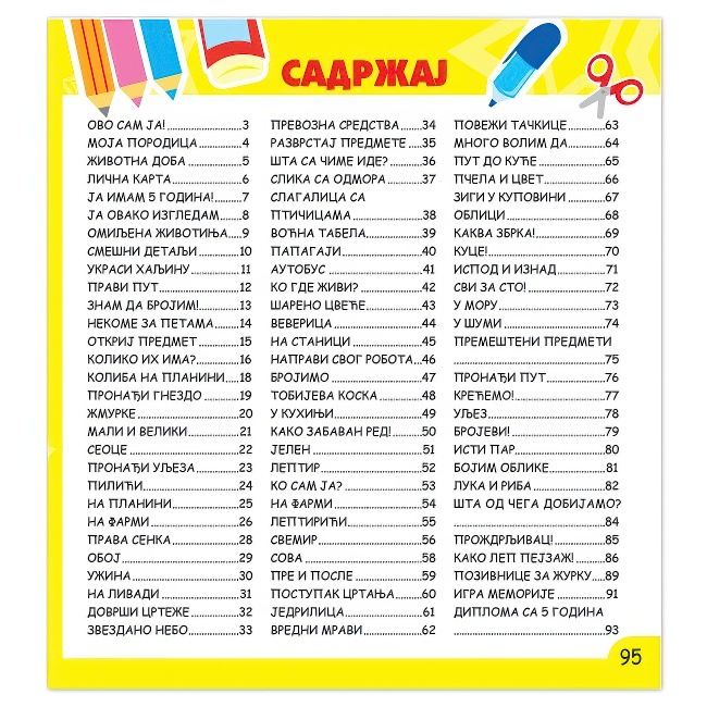 Radna sveska pred vama sadrži mnoštvo aktivnosti koje će podstaći dijete da logički razmišlja i razvije fine grafomotoričke vještine. Dijete će povezivati linije, učiti da broji, tražiti sl... pročitaj više